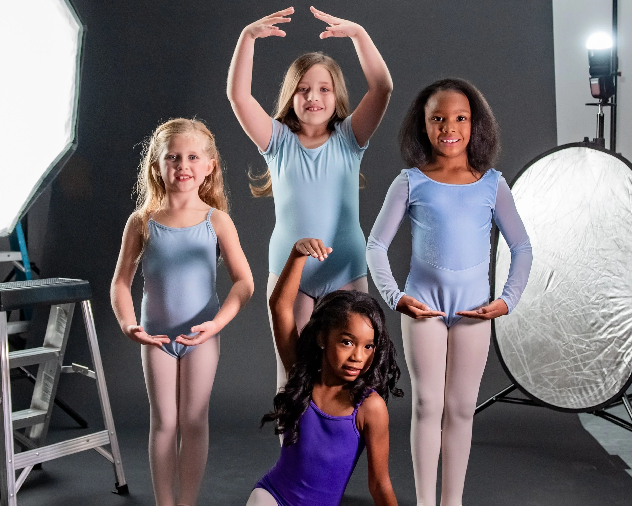 Young dancers ages 2 to 8 begin their journey with a variety of introductory classes such as Creative Movement, Combo Classes, and Level I Classes